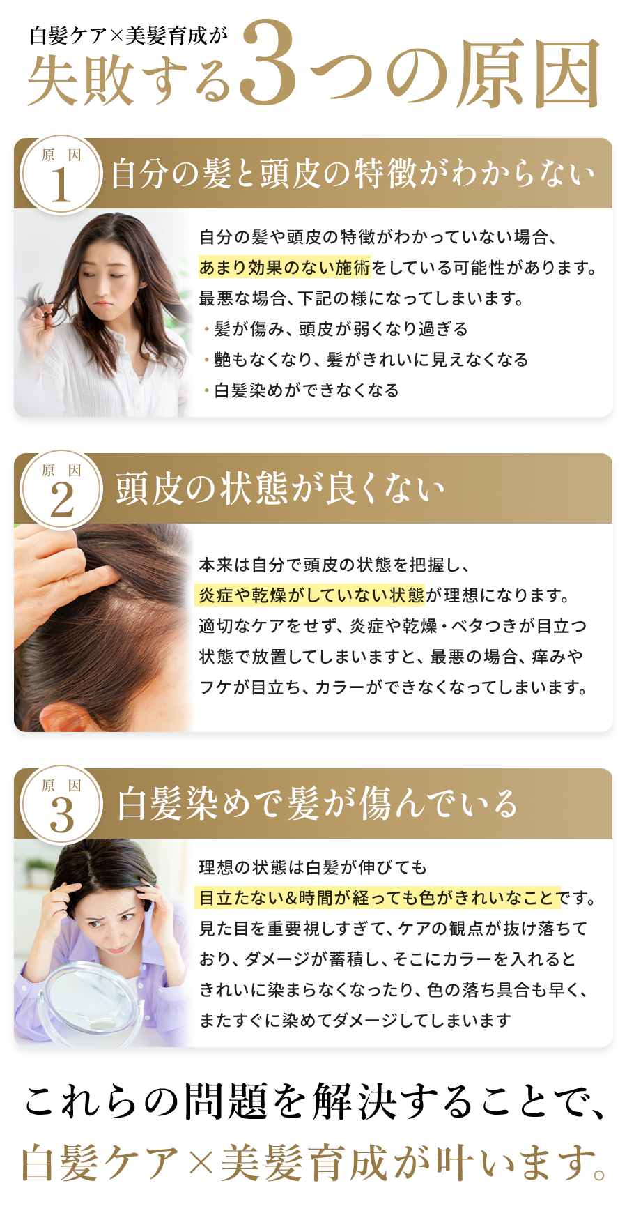 髪質改善だけをしていたらOKではなく、髪質改善も頭皮改善も同時にやるから意味があります。